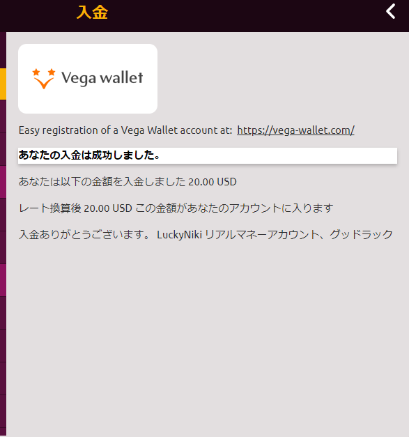 ベガウォレットから入金する方法